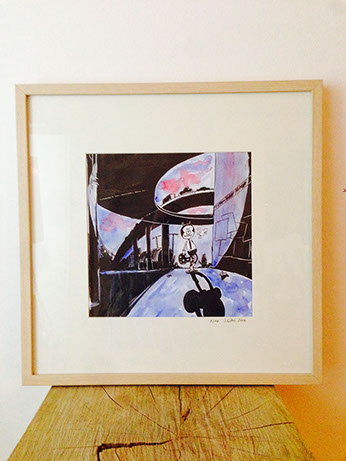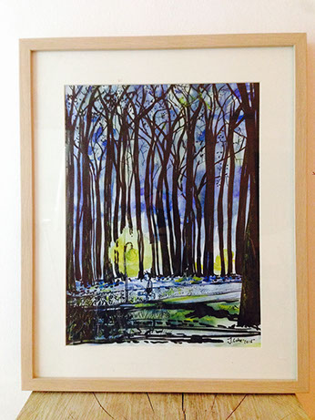 Druck, aquarelliert.